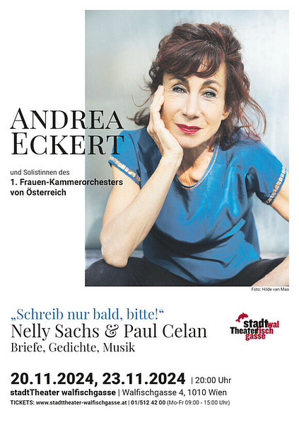 20. und 23.11.2024, 20:00Andrea Eckert liest aus dem Briefwechsel zwischen Nelly Sachs und Paul Celan